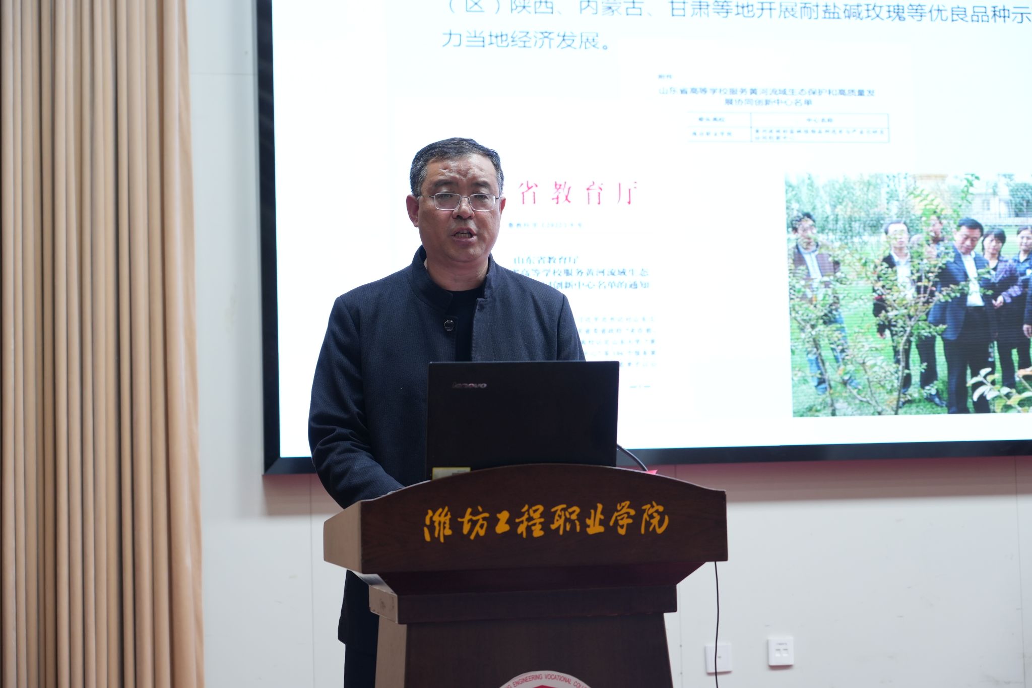 10月29日下午,第二届潍坊市黄炎培职业教育创新创业大赛颁奖典礼暨“校企同心 携手共进”——潍坊市“百名专家教授联百企”经验交流会在潍坊工程职业学院举行。学院院长韩瑞东出席会议并为获奖人员颁奖,科技处、招生就业处负责人及相关工作人员参加会议。